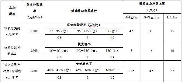 其它新能源客車補(bǔ)貼標(biāo)準(zhǔn)