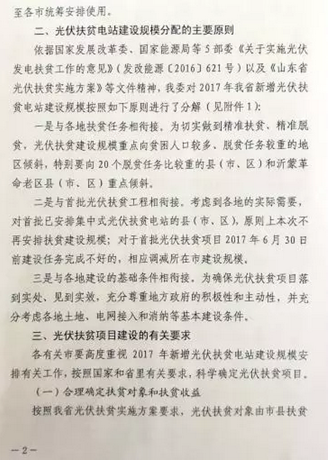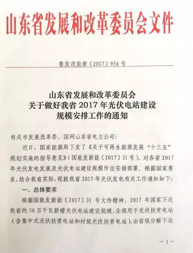 中國儲能網(wǎng)訊:山東省2017年500MW光伏電站指標分配方案