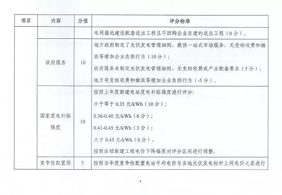 競爭類指標(biāo)則由土地資源指標(biāo)、地方政府服務(wù)指標(biāo)、電網(wǎng)企業(yè)服務(wù)指標(biāo)、國家度電補(bǔ)貼強(qiáng)度指標(biāo)、競爭性配置項目平均度電補(bǔ)貼降幅指標(biāo)、地方政府補(bǔ)貼力度指標(biāo)組成。其中土地資源指標(biāo)占比最大。
