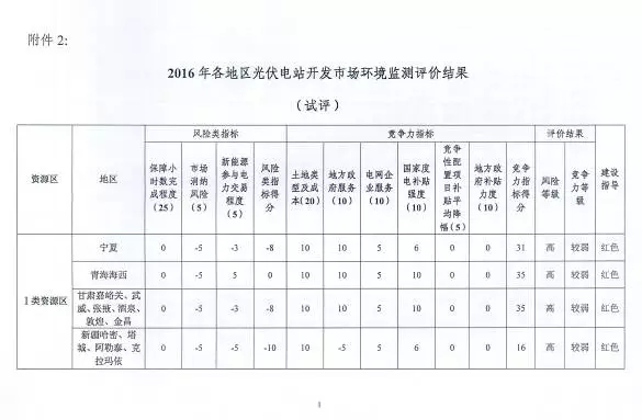此外,國家能源局還在該文件中發(fā)布了2016年監(jiān)測評價結(jié)果,新疆、甘肅、青海海西、寧夏等均被列為紅色投資示警區(qū)域。