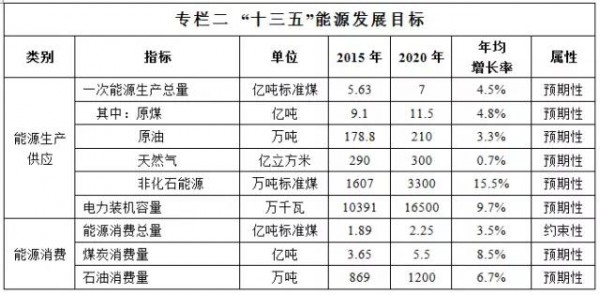 ——能源生產(chǎn)供應(yīng)。保持能源生產(chǎn)供應(yīng)穩(wěn)步增長,全區(qū)一次能源生產(chǎn)總量達(dá)到7億噸標(biāo)準(zhǔn)煤左右。原煤產(chǎn)量控制在11.5億噸左右,原油產(chǎn)量達(dá)到210萬噸,天然氣(含非常規(guī)天然氣)產(chǎn)量達(dá)到300億立方米以上,非化石能源生產(chǎn)量達(dá)到3300萬噸標(biāo)準(zhǔn)煤。電力裝機(jī)容量達(dá)到1.65億千瓦左右,其中火電1億千瓦、風(fēng)電4500萬千瓦、光伏1500萬千瓦左右。