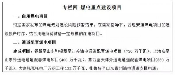 穩(wěn)步推進(jìn)煤電基地建設(shè)。綜合考慮國家能源發(fā)展戰(zhàn)略、受端電力市場需求等因素,合理安排煤電基地建設(shè)時序。重點(diǎn)圍繞鄂爾多斯、錫林郭勒、呼倫貝爾三個以電力外送為主的大型煤電基地,積極推進(jìn)高參數(shù)、大容量先進(jìn)燃煤發(fā)電機(jī)組建設(shè),新建燃煤發(fā)電項目原則上采用60萬千瓦及以上超超臨界機(jī)組。鄂爾多斯煤電基地重點(diǎn)推進(jìn)上海廟-山東、蒙西-天津南等輸電通道配套煤電建設(shè);錫林郭勒煤電基地重點(diǎn)推進(jìn)錫盟-山東、錫盟-江蘇等輸電通道配套煤電建設(shè);呼倫貝爾煤電基地積極啟動呼倫貝爾外送輸電通道配套煤電建設(shè)。