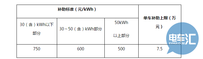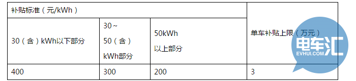 以提供驅(qū)動動力的動力電池總儲電量為依據(jù),采取分段超額累退方式給予補助,具體如下: