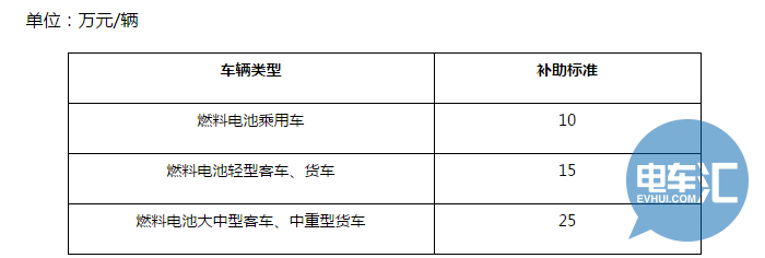 燃料電池汽車推廣應(yīng)用補助標準如下: