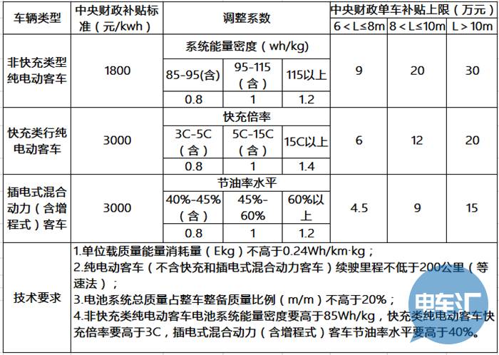 1、新能源公交車補貼金額=車輛帶電量x單位電量補貼標準x調(diào)整系數(shù)(調(diào)整系數(shù):系統(tǒng)能量密度/充電倍率/節(jié)油水平),具體如下: