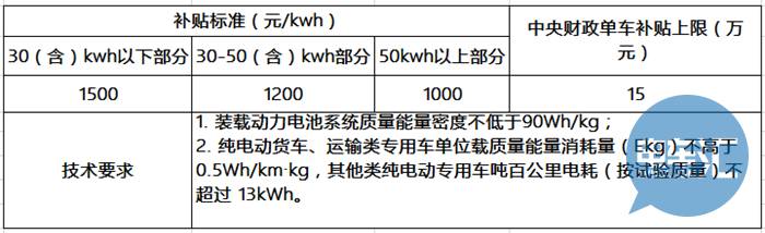 新能源貨車和專用車以提供驅(qū)動動力的動力電池總儲電量為依據(jù),采取分段超額累退方式給予補助,具體如下: