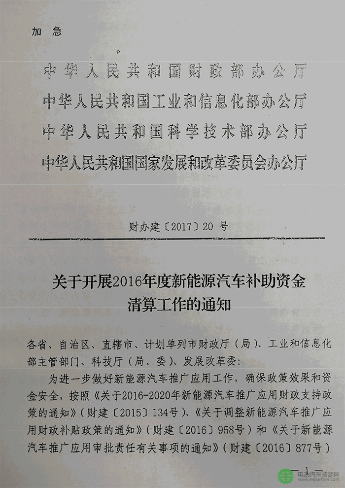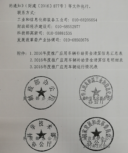 另外,該通知要求,省級(jí)新能源汽車推廣牽頭部門會(huì)同其他相關(guān)部門經(jīng)財(cái)務(wù)審查資料審核和重點(diǎn)抽查后,于2017年4月30日前將申報(bào)材料報(bào)至工業(yè)和信息化部裝備工業(yè)司、財(cái)政部經(jīng)濟(jì)建設(shè)司,并抄送同級(jí)其他部門,逾期未報(bào)或報(bào)送內(nèi)容不符合要求的,將延期清算。