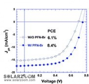 中國儲能網(wǎng)訊: 來自華南理工大學(xué)發(fā)光材料與器件國家重點(diǎn)實(shí)驗(yàn)室、阿克倫大學(xué)和Bruker集團(tuán)納米表面實(shí)驗(yàn)室的學(xué)者日前公布了在高分子太陽能電池領(lǐng)域的最新研究進(jìn)展,通過采用共軛聚電解質(zhì)PBDT-DTNT和富勒烯衍生物電子受體PC71BM,該團(tuán)隊(duì)制作出了轉(zhuǎn)換效率8.4%的倒置結(jié)構(gòu)(或稱反相結(jié)構(gòu))有機(jī)太陽能電池。該結(jié)果已在在英國皇家化學(xué)學(xué)會期刊上發(fā)表。