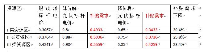上網(wǎng)電價(jià)下調(diào)帶來(lái)的補(bǔ)貼需求下降(單位:元/kwh)