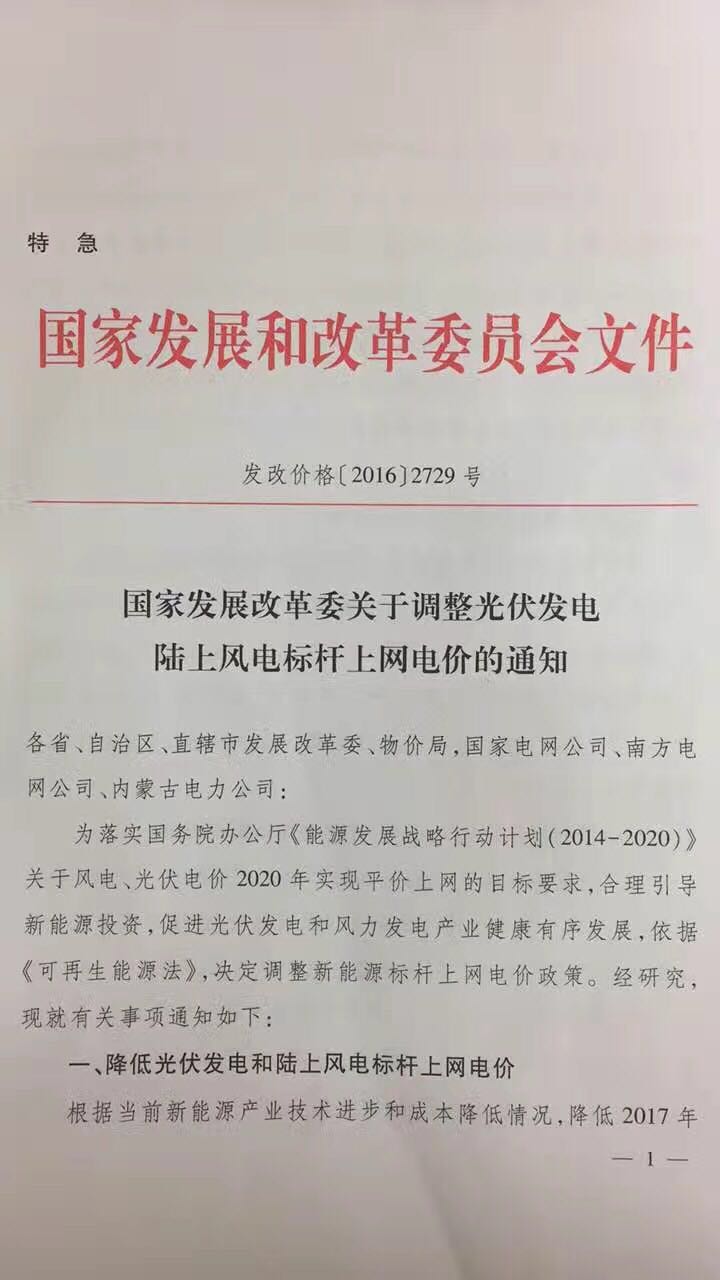 中國(guó)儲(chǔ)能網(wǎng)訊:坊間一直在傳的2017年光伏上網(wǎng)電價(jià)終于正式下發(fā)。