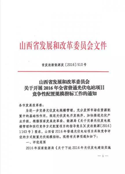 中國儲能網(wǎng)訊:日前,山西發(fā)改委下發(fā)《關于開展2016年全省普通光伏電站競爭性配置規(guī)模指標工作的通知》,要求各市發(fā)改委須于7月28日前,統(tǒng)一組織各市參與評優(yōu)的光伏發(fā)電項目,完成資料報送工作。