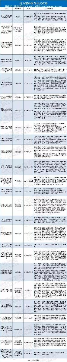 事實(shí)上,我國調(diào)頻服務(wù)市場的開啟,主要是受2006年電監(jiān)會(huì)印發(fā)的《并網(wǎng)發(fā)電廠輔助服務(wù)管理暫行辦法》以及在此《辦法》規(guī)定下,東北、西北、華北、華中以及南方電監(jiān)局相繼出臺(tái)的各區(qū)域的兩個(gè)細(xì)則,即《發(fā)電廠并網(wǎng)運(yùn)行管理細(xì)則》以及《并網(wǎng)發(fā)電廠輔助服務(wù)管理細(xì)則》。據(jù)不完全統(tǒng)計(jì),截至目前,國家及地方已出臺(tái)30項(xiàng)左右電力輔助服務(wù)相關(guān)政策。