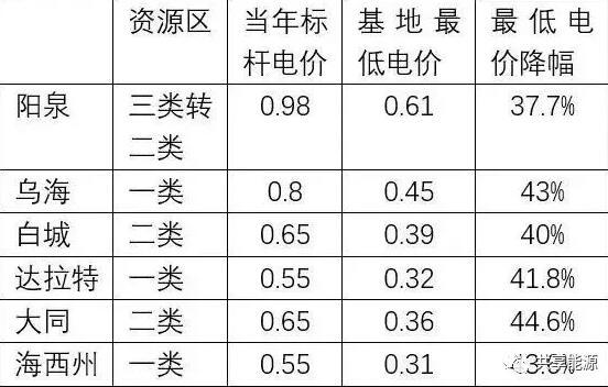 領(lǐng)跑基地投標(biāo)電價不斷刷新最低電價---第三批領(lǐng)跑基地投標(biāo)中,在白城的0.39元/千瓦時最低投標(biāo)電價之后,最低電價仍在不斷刷新,從達拉特旗的0.32元/千瓦時到大同的0.36元/千瓦時,再到青?;氐?.31元/千瓦時。