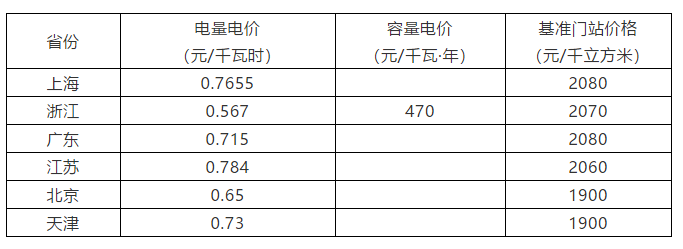 表4 地方天然氣發(fā)電統(tǒng)一電價(jià)規(guī)定