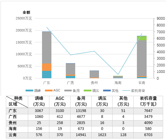 圖12南方區(qū)域分省(區(qū))電力輔助服務(wù)補(bǔ)償分項(xiàng)費(fèi)用情況