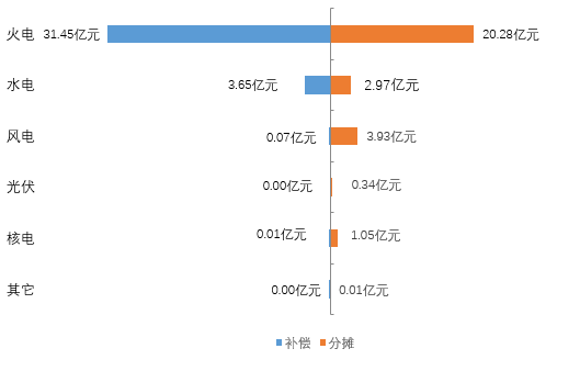 從能源類型的角度來看,電力輔助服務(wù)補(bǔ)償費(fèi)用的補(bǔ)償與分?jǐn)傎M(fèi)用對(duì)比如下。(見圖5)。