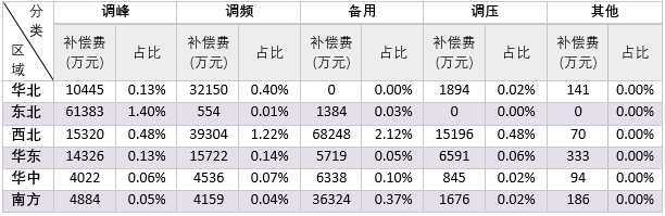 (一)各區(qū)域電力輔助服務(wù)補(bǔ)償費(fèi)用情況