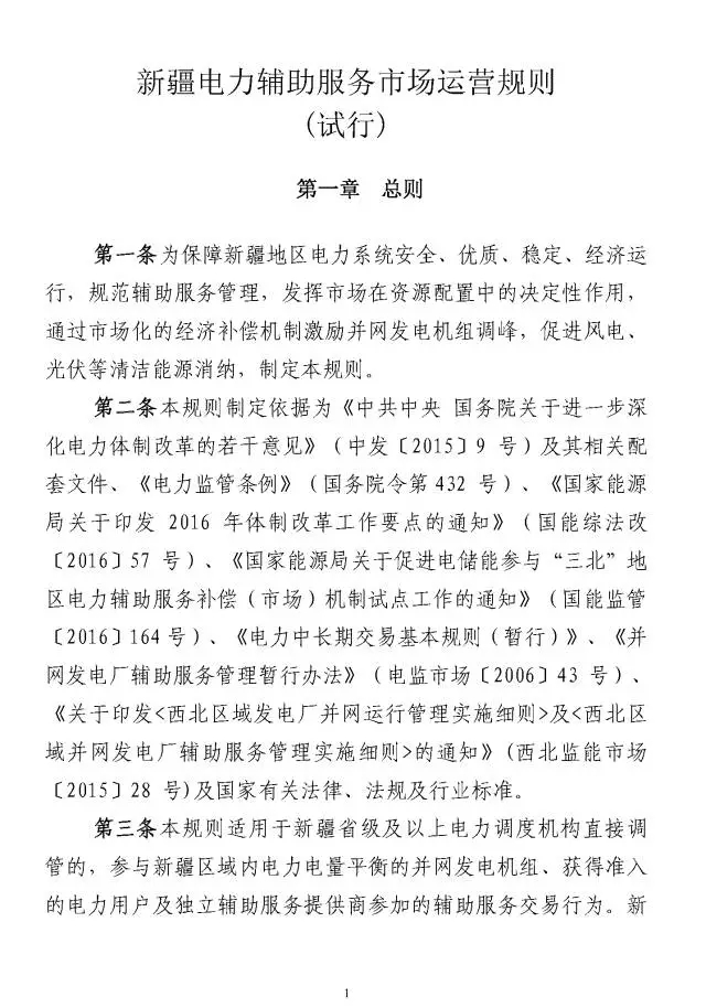 中國儲能網(wǎng)訊:9月28日,國家能源局新疆監(jiān)管辦公室公開發(fā)布了《新疆電力輔助服務(wù)市場運(yùn)營規(guī)則(試行)》,《規(guī)則》中明確指出要充分發(fā)揮市場在資源配置中的決定性作用,促進(jìn)風(fēng)電、光伏等新能源消納,各省級以上電力調(diào)度機(jī)構(gòu)參與新疆區(qū)域內(nèi)電力電量平衡的并網(wǎng)發(fā)電站。