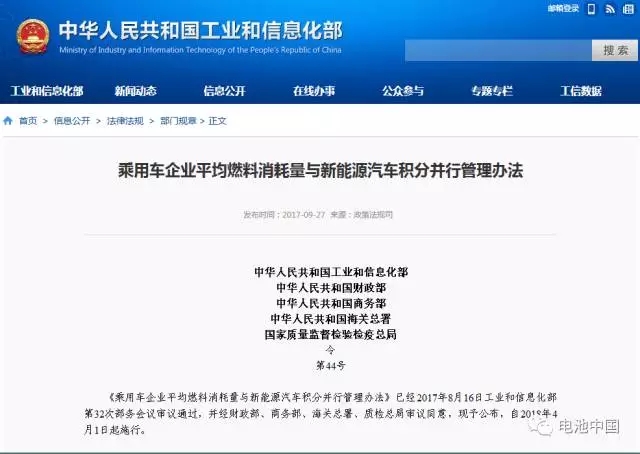 中國(guó)儲(chǔ)能網(wǎng)訊:9月28日,國(guó)家工信部等5部委聯(lián)合發(fā)布《乘用車企業(yè)平均燃料消耗量與新能源汽車積分并行管理辦法》。