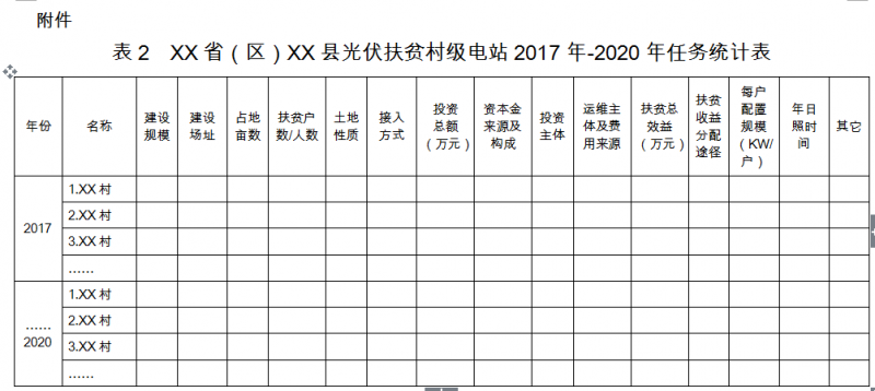 附件:表2 XX省(區(qū))XX縣光伏扶貧村級(jí)電站2017年-2020 年任務(wù)統(tǒng)計(jì)表