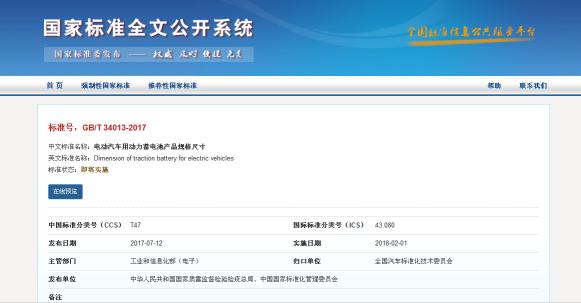文件名稱:GB/T34013-2017《電動汽車用動力蓄電池產(chǎn)品規(guī)格尺寸》;