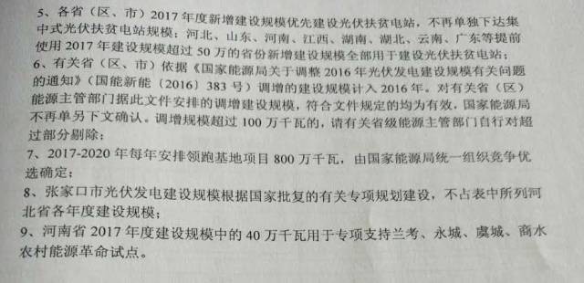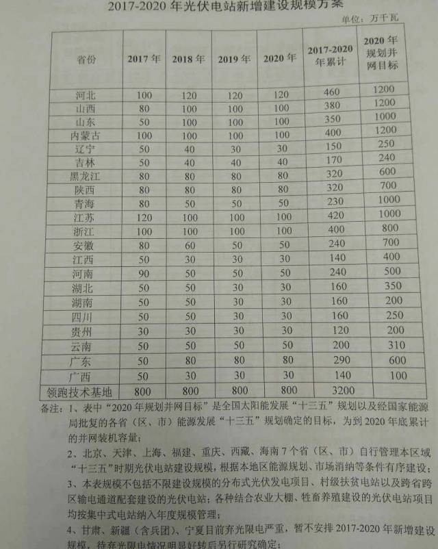 中國儲能網(wǎng)訊:日前,國家能源局出臺《關(guān)于可再生能源發(fā)展“十三五”規(guī)劃實(shí)施的指導(dǎo)意見》,對“十三五”期間2017-2020年的光伏發(fā)展規(guī)模進(jìn)行了規(guī)劃。文件指出未來4年(2017-2020)國家能源局規(guī)劃的普通光伏電站指標(biāo)為54.5GW,領(lǐng)跑者項(xiàng)目指標(biāo)為每年8GW(共計(jì)32GW)。同時規(guī)定甘肅、新疆(含兵團(tuán))、寧夏在棄光率明顯好轉(zhuǎn)之前不做安排;北京、上海、天津、福建、重慶、西藏、海南7個省市自行管理本區(qū)域“十三五”期間的建設(shè)指標(biāo);分布式光伏、村級扶貧電站及跨省跨區(qū)輸電通道配套建設(shè)的光伏電站都不包含在本指標(biāo)內(nèi)。