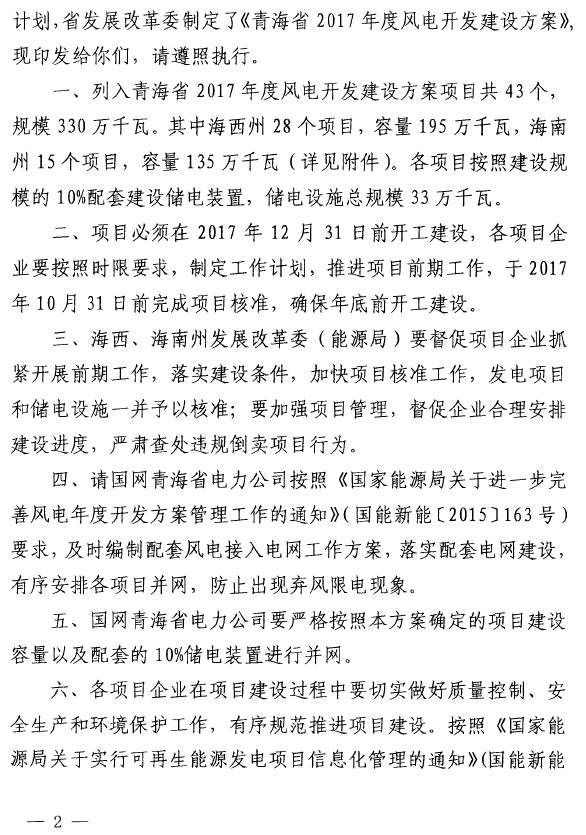 中國(guó)儲(chǔ)能網(wǎng)訊:近日,青海發(fā)改委印發(fā)了該省2017年3.3GW風(fēng)電開發(fā)建設(shè)方案(文件見后方),值得注意的是,各項(xiàng)目按照建設(shè)規(guī)模須配套10%的儲(chǔ)電裝置,儲(chǔ)電設(shè)施總規(guī)模為33萬千瓦(330MW)。此舉開創(chuàng)了可再生能源發(fā)展的新方向。由于風(fēng)電成本已經(jīng)下降至較低的水平,如果未來光伏電力成本也降至一定程度,或許西部限電地區(qū)也將采用這種方式進(jìn)行大規(guī)模發(fā)展。