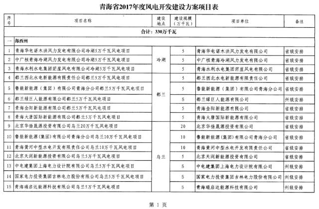 青海此次配置的43個(gè)、總計(jì)3.3GW的風(fēng)電項(xiàng)目分別位于海西州(28個(gè)、1.95GW)和海南州(15個(gè)、1.35GW)。這些項(xiàng)目被要求在2017年10月底前完成核準(zhǔn),年底前開工建設(shè)。建成并網(wǎng)時(shí),國(guó)網(wǎng)青海電力公司將嚴(yán)格要求配套的10%儲(chǔ)電裝置進(jìn)行并網(wǎng)。