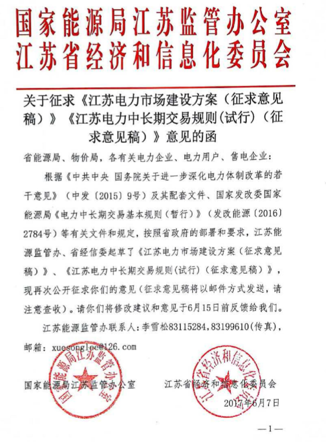 江蘇經(jīng)信委、能監(jiān)辦公布《江蘇電力市場建設(shè)方案征求意見稿》,包括階段性目標(biāo)和現(xiàn)貨市場建設(shè)方案。