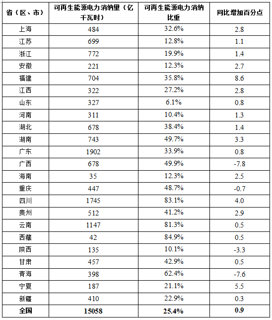 二、各?。▍^(qū)、市)可再生能源電力消納情況