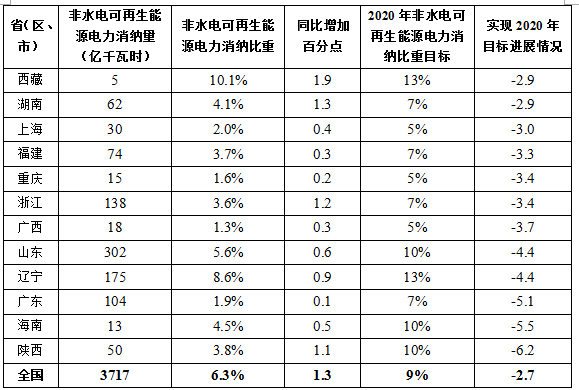 三、各?。▍^(qū)、市)非水電可再生能源電力消納情況