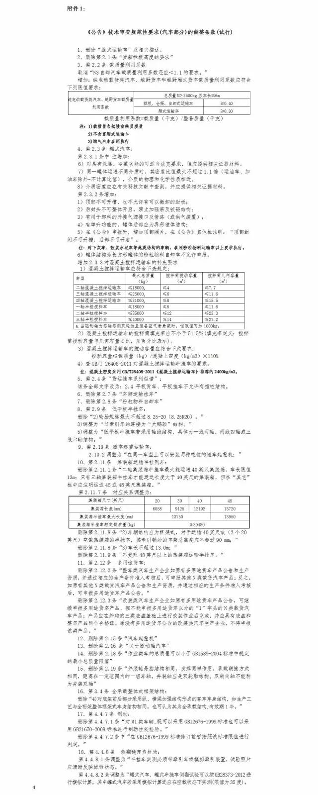1.《公告》技術(shù)審查規(guī)范性要求(汽車部分)的調(diào)整條款(試行)
