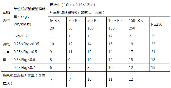 注:上述補助標(biāo)準(zhǔn)以10-12米客車為標(biāo)準(zhǔn)車給予補助,其他長度純電動客車補助標(biāo)準(zhǔn)按照上表單位載質(zhì)量能量消耗量和純電動續(xù)駛里程劃分,插電式混合動力客車(含增程式)補助標(biāo)準(zhǔn)按照上表純電動續(xù)駛里程劃分。其中,6米及以下客車按照標(biāo)準(zhǔn)車0.2倍給予補助;6米<車長≤8米客車按照標(biāo)準(zhǔn)車0.5倍給予補助;8米<車長≤10米客車按照標(biāo)準(zhǔn)車0.8倍給予補助;12米以上、雙層客車按照標(biāo)準(zhǔn)車1.2倍給予補助。