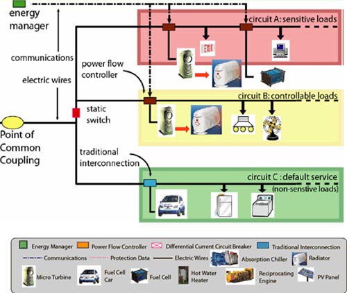 示范了對三類不同供電質(zhì)量要求的負(fù)荷的個性化微電源供電方案