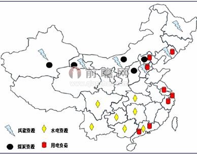 由下圖不難發(fā)現(xiàn),我國的電力資源分布相對集中在華北和西南地區(qū),而用電負荷相對集中于東南沿海地區(qū)。我國用電負荷大的地區(qū)與西北、西南清潔能源集中地區(qū)距離較長的特點,使得我國應(yīng)重點發(fā)展長距離、高容量、低損耗的輸電骨干網(wǎng)絡(luò)。