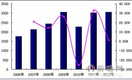 圖表2:2006-2012年國網(wǎng)的電網(wǎng)建設(shè)投資規(guī)模增長情況(單位:億元,%)