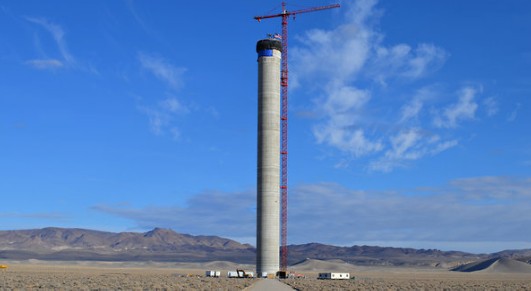 建設(shè)中的太陽能集熱塔。(自《紐約時報》)