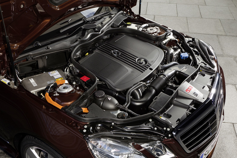 奔馳車預(yù)先展示兩種混合動力汽車。一種是燃?xì)怆妱悠?E 400,這種設(shè)計是依靠電力,每加侖只有 27英里。另一種是柴油 E300 型汽車(上圖),每加侖大約為50英里(每一百公里4.2升)。
