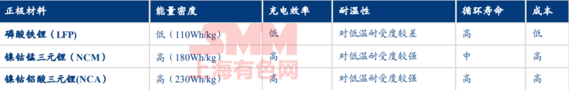 其中,磷酸鐵鋰正極化學(xué)性質(zhì)穩(wěn)定且使用壽命較長,同時由于原材料價格低廉,其仍占據(jù)動力電池半壁江山;而三元材料電池高能量密度、更強的耐溫性和充電效率等優(yōu)勢使得其近年越來越受到青睞,占比迅速提升。