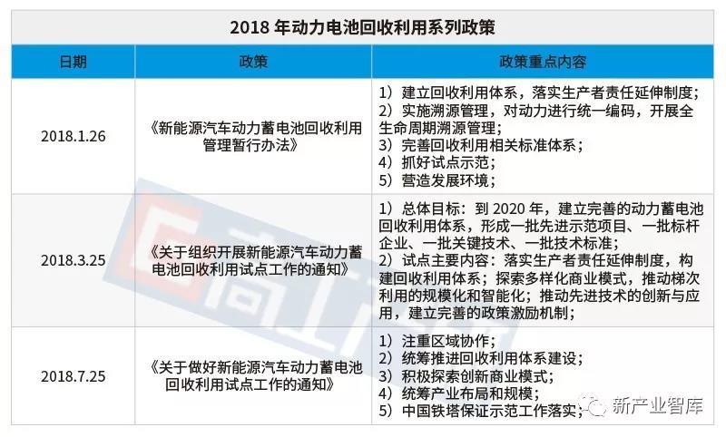 據(jù)2018年公布的一系列政策來看,從最初的總體方向的確定,到最終試點(diǎn)工作方案的詳細(xì)布局,動(dòng)力電池回收利用政策逐步完善。分析7月25日公布的《關(guān)于做好新能源汽車動(dòng)力蓄電池回收利用試點(diǎn)工作的通知》細(xì)則來看,有以下幾項(xiàng)重點(diǎn):