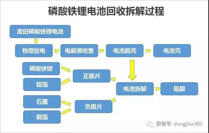 磷酸鐵鋰電池的拆解處理上:廠家主要先拆包切割得到正負(fù)極片及隔膜,這部分需要人工來(lái)完成,自動(dòng)化程度低,然后進(jìn)行破碎分選回收銅、鋁,在金屬鋰的提取上,由提取技術(shù)不同所以方法也不相同,目前有以格林美、邦普為代表的濕法提純得到碳酸鋰以及部分企業(yè)嘗試正極修復(fù)得到磷酸鐵鋰進(jìn)行二次利用。