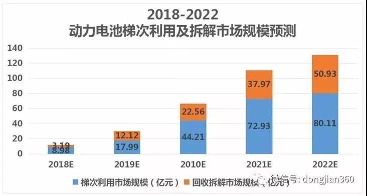 2018年為動(dòng)力電池回收再利用元年,2020年為動(dòng)力電池回收再利用爆發(fā)年。伴隨著動(dòng)力電池報(bào)廢量的不斷增長(zhǎng),未來(lái)十年電池回收很可能達(dá)到百億美元的市場(chǎng)份額。目前動(dòng)力電池回收后的方向主要是梯次利用及拆解,基于現(xiàn)在的金屬回收價(jià)格以及技術(shù)情況,磷酸鐵鋰電池回收之后梯次利用應(yīng)用廣而三元電池回收之后更多的是報(bào)廢拆解。