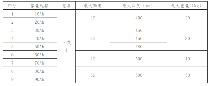 (9)19英寸嵌入式梯次電池在標(biāo)準(zhǔn)機(jī)柜安裝應(yīng)將電池組安裝配套掛耳固定在標(biāo)準(zhǔn)機(jī)柜內(nèi),電池箱下方增加托盤保護(hù),并考慮機(jī)柜承重。