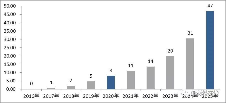 圖 3 鋰電池回收利用市場總規(guī)模預測(單位:億元)