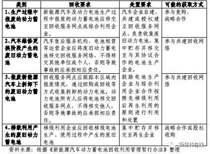 資料來源:根據(jù)《新能源汽車動力蓄電池回收利用管理暫行辦法》整理