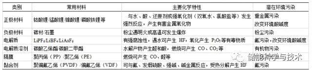 表1 廢舊鋰離子電池中常用組成材料的主要化學(xué)特性和潛在環(huán)境污染