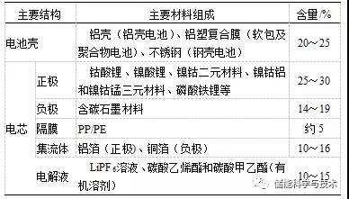 表3 鋰離子電池主要結(jié)構(gòu)及組成