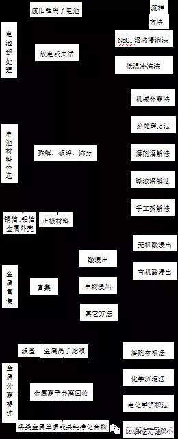 圖2列出了廢舊鋰離子電池中金屬材料回收的技術(shù)工藝流程