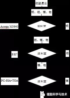圖3顯示了不同萃取劑分步分離銅、鋁、鋰和鈷的工藝。