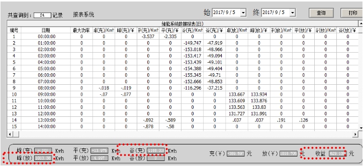 注:2017年9月5日,谷時(shí)充電1183kWh,峰時(shí)放電1013kWh,谷充389元,峰放1018元,收益629元。